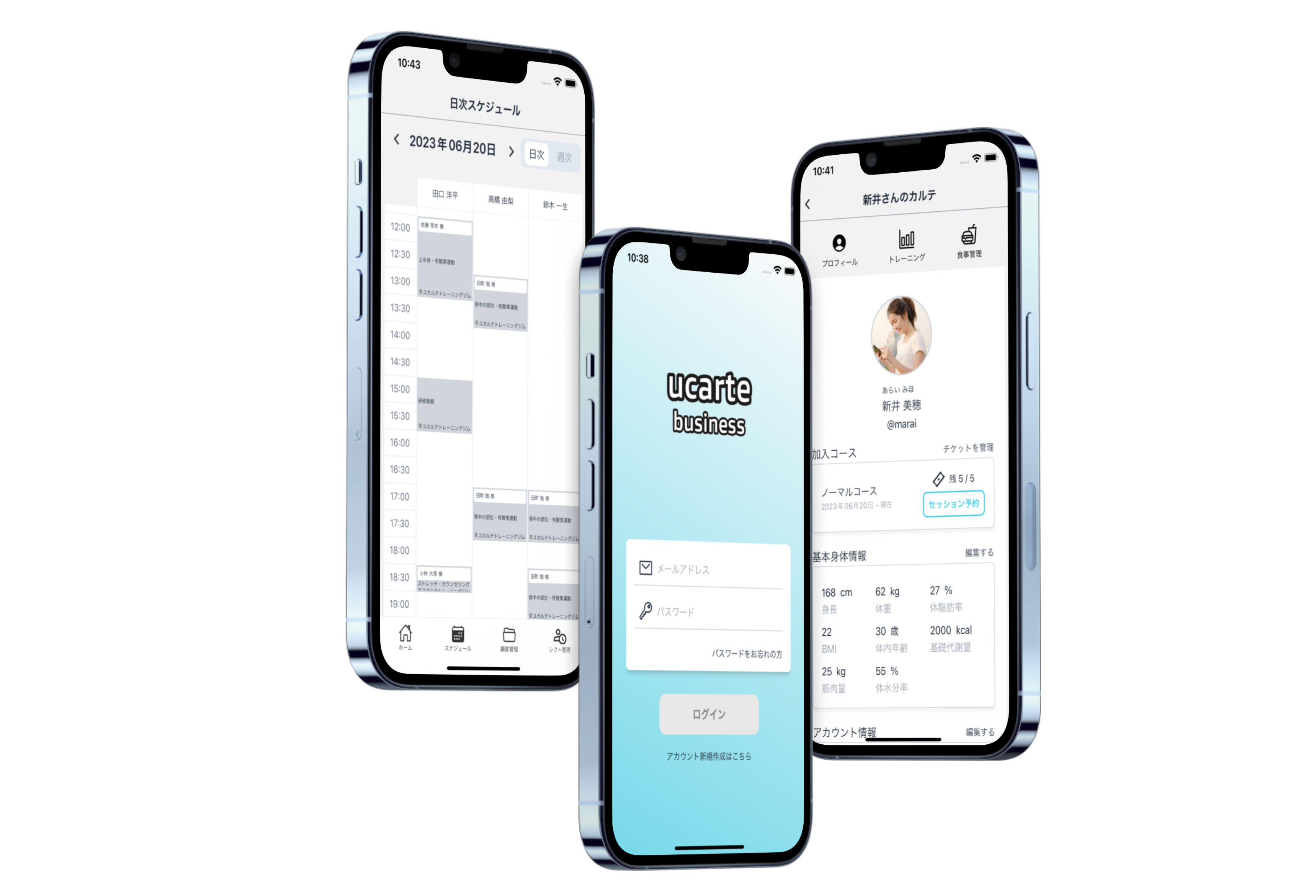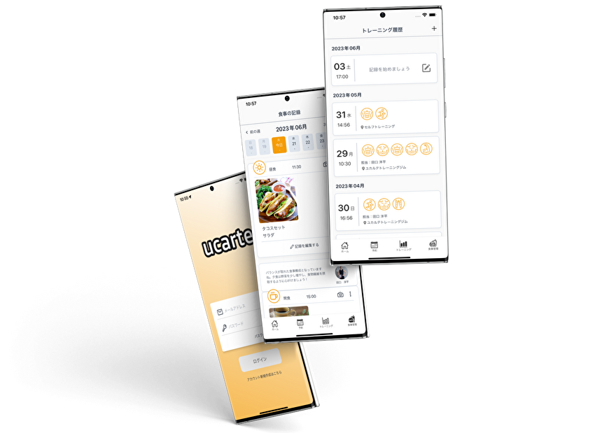 ユカルテビジネスと対を成す、トレーニー専用の健康記録管理アプリです。トレーニーはアプリを通してトレーニングセッションの予約、トレーニング履歴記録の閲覧、食事の記録管理や写真のアップロードが出来ます。食事記録に対してトレーナーからフィードバックをもらうことも可能!